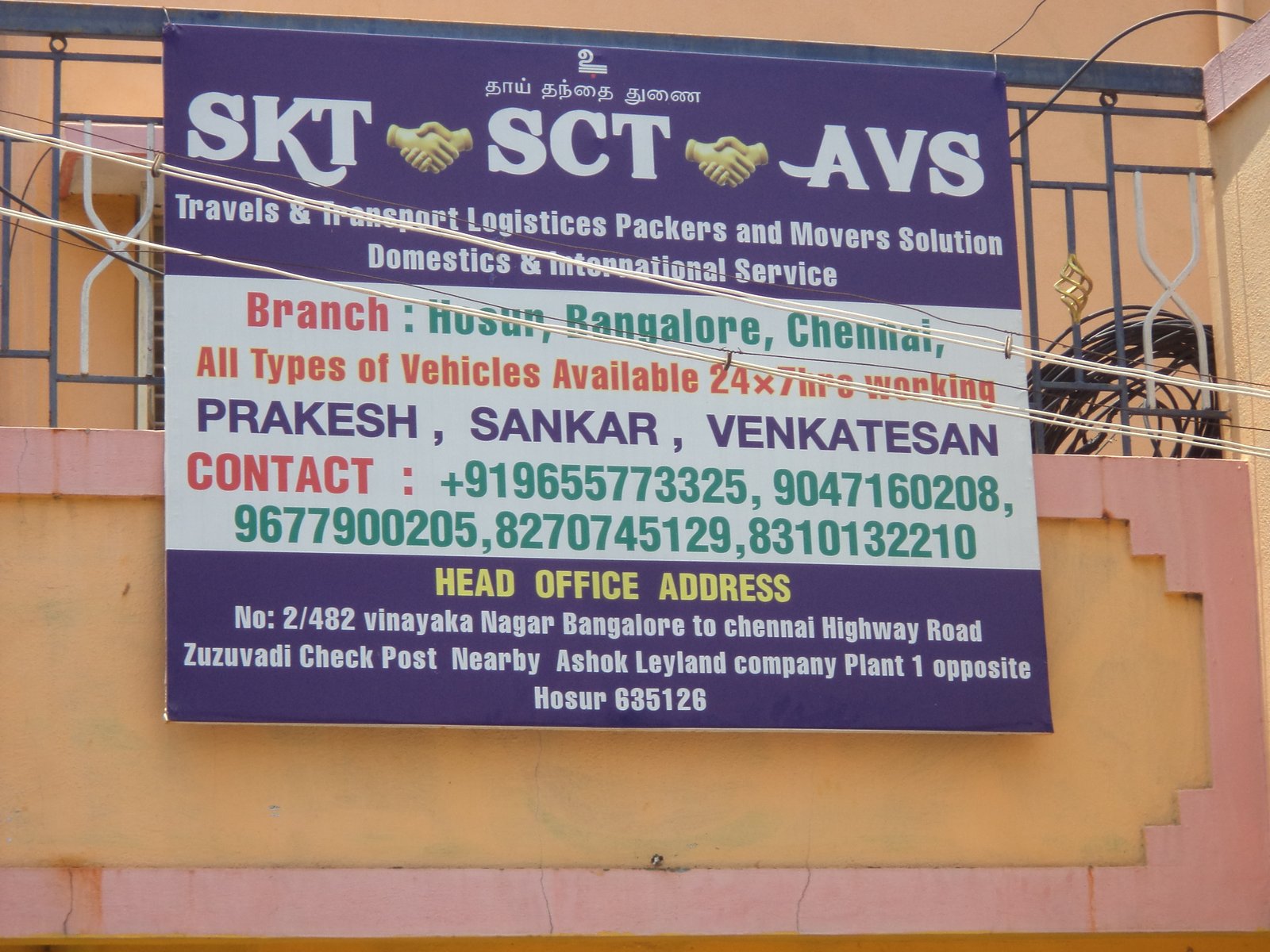 You can reach and locate SKT Packers and Movers at No.2/482, Vinayaka Nagar, Bangalore to Chennai Highway Road, Zuzuvadi Check Post, Nearby Ashok Leyland Company, Hosur-635126. Tamil Nadu